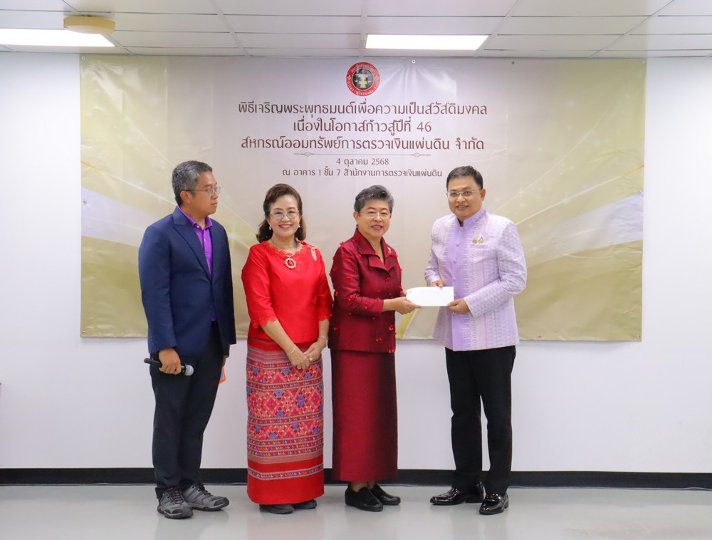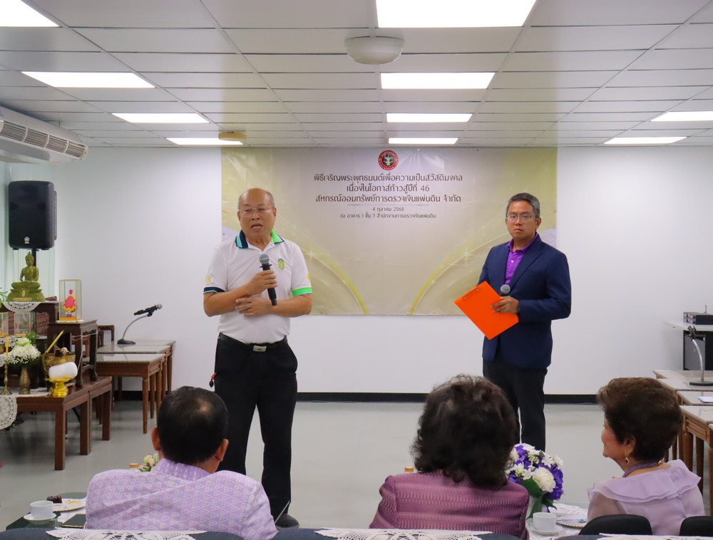 พิธีเจริญพระพุทธมนต์เพื่อความเป็นสิริมงคลเนื่องโอกาสก้าวสู่ปีที่ 46 ของสหกรณ์ออมทรัพย์การตรวจเงินแผ่นดิน จำกัด วันที่ 4 ตุลาคม 2568 ณ อาคาร 1 ชั้น 7 สำนักงานการตรวจเงินแผ่นดิน เพื่อความเป็นสิริมงคลแด่สหกรณ์และสมาชิกสหกรณ์