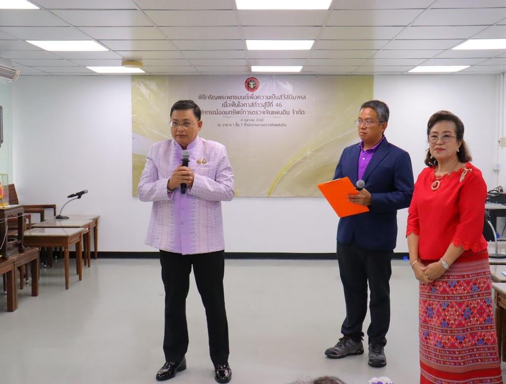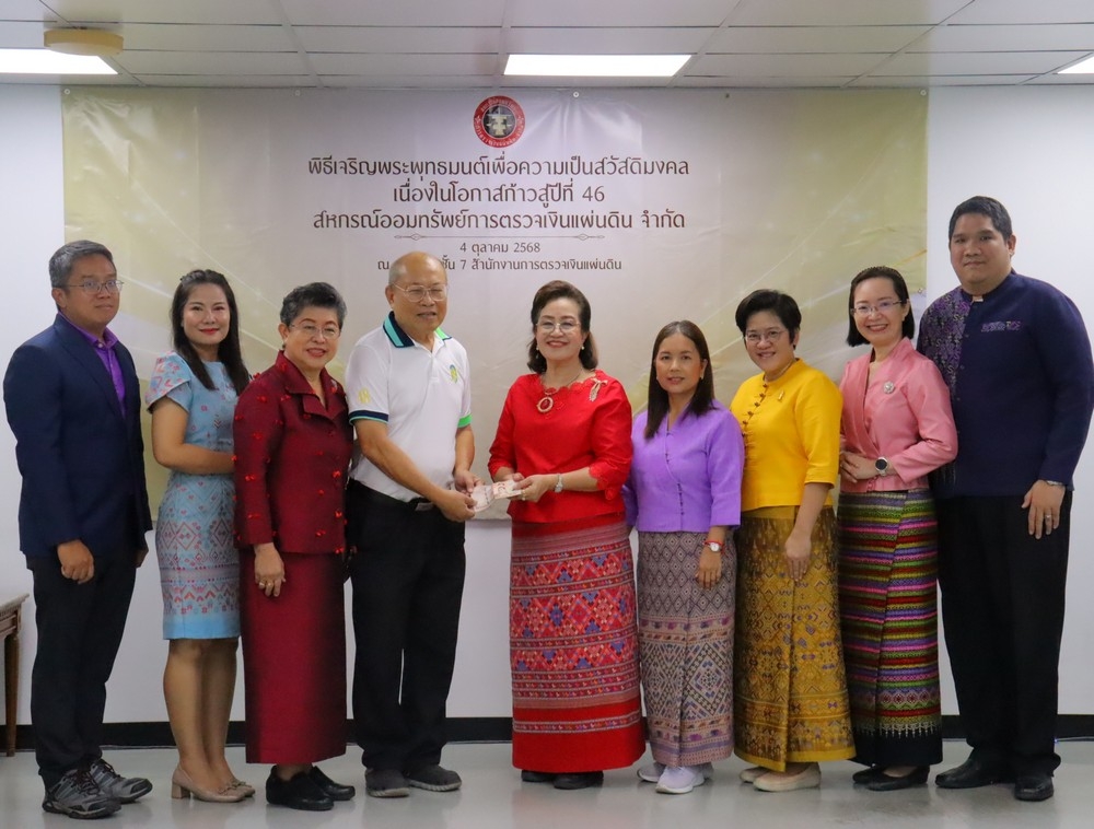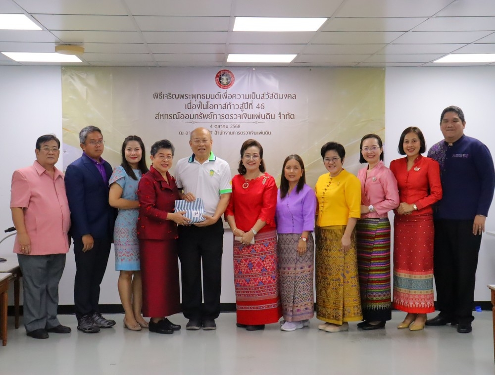 พิธีเจริญพระพุทธมนต์เพื่อความเป็นสิริมงคลเนื่องโอกาสก้าวสู่ปีที่ 46 ของสหกรณ์ออมทรัพย์การตรวจเงินแผ่นดิน จำกัด วันที่ 4 ตุลาคม 2568 ณ อาคาร 1 ชั้น 7 สำนักงานการตรวจเงินแผ่นดิน เพื่อความเป็นสิริมงคลแด่สหกรณ์ และสมาชิกสหกรณ์